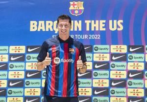 现年36岁的波兰前锋莱万多夫斯基,2022年的今日从拜仁以5000万欧总价转会至巴萨。效力红蓝军团期间,莱万代表球队出战147场,打进101球,贡献20助攻。为巴萨赢得2座联赛西甲冠军,1座国王杯冠军、2座西班牙超级杯冠军。