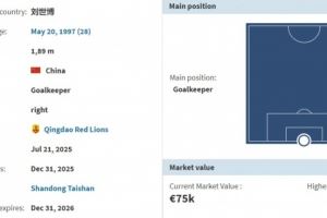 刘世博,1997年5月20日出生,曾效力于广州队。2023年,刘世博加盟山东泰山队。2024赛季,刘世博代表泰山队出战6场。本赛季,刘世博没有为泰山一线队登场。